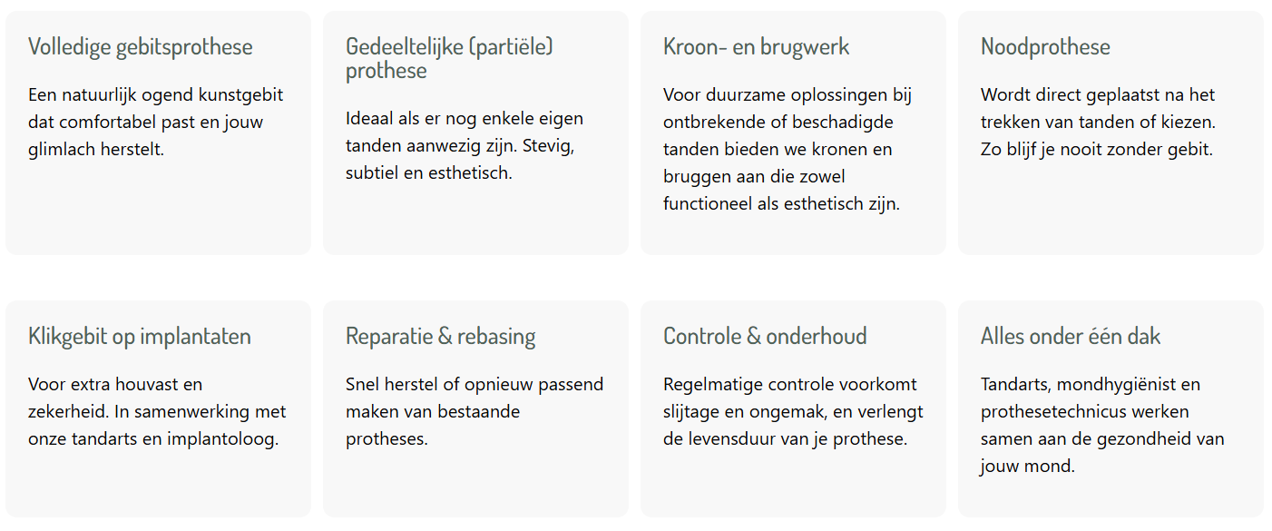 Behandelingen bij onze klinisch prothese tandtechnicus